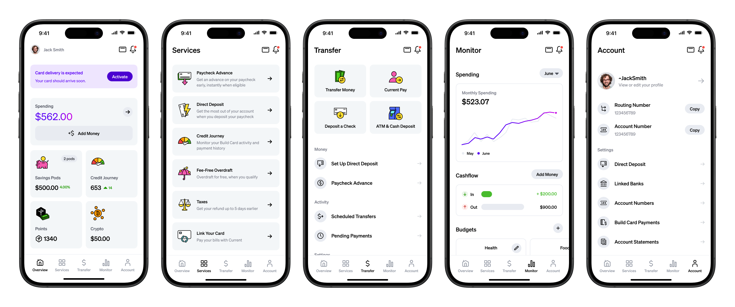 - Services - access to product features (Paycheck Advance, Credit Journey, Overdraft, Taxes)
