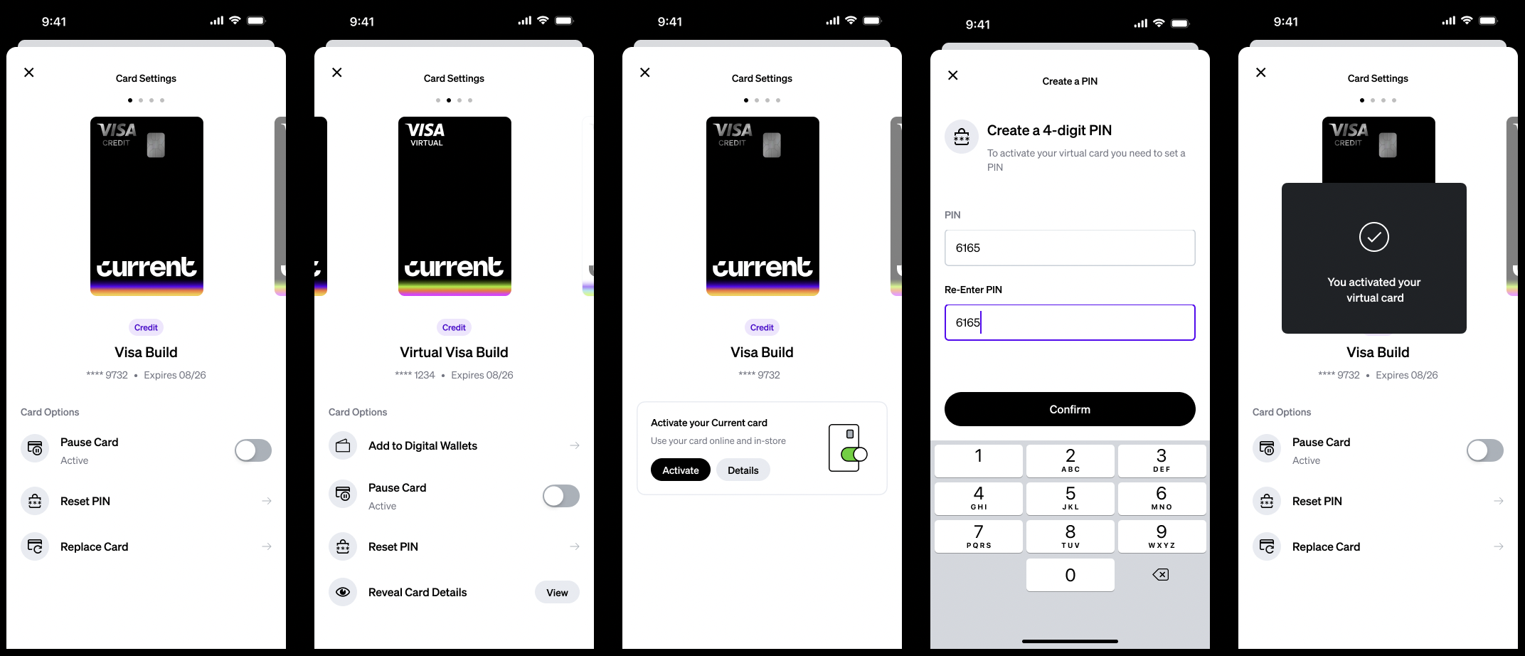 A place for the user to manage their physical cards, active, pause or reorder cards as well as access to virtual card number.