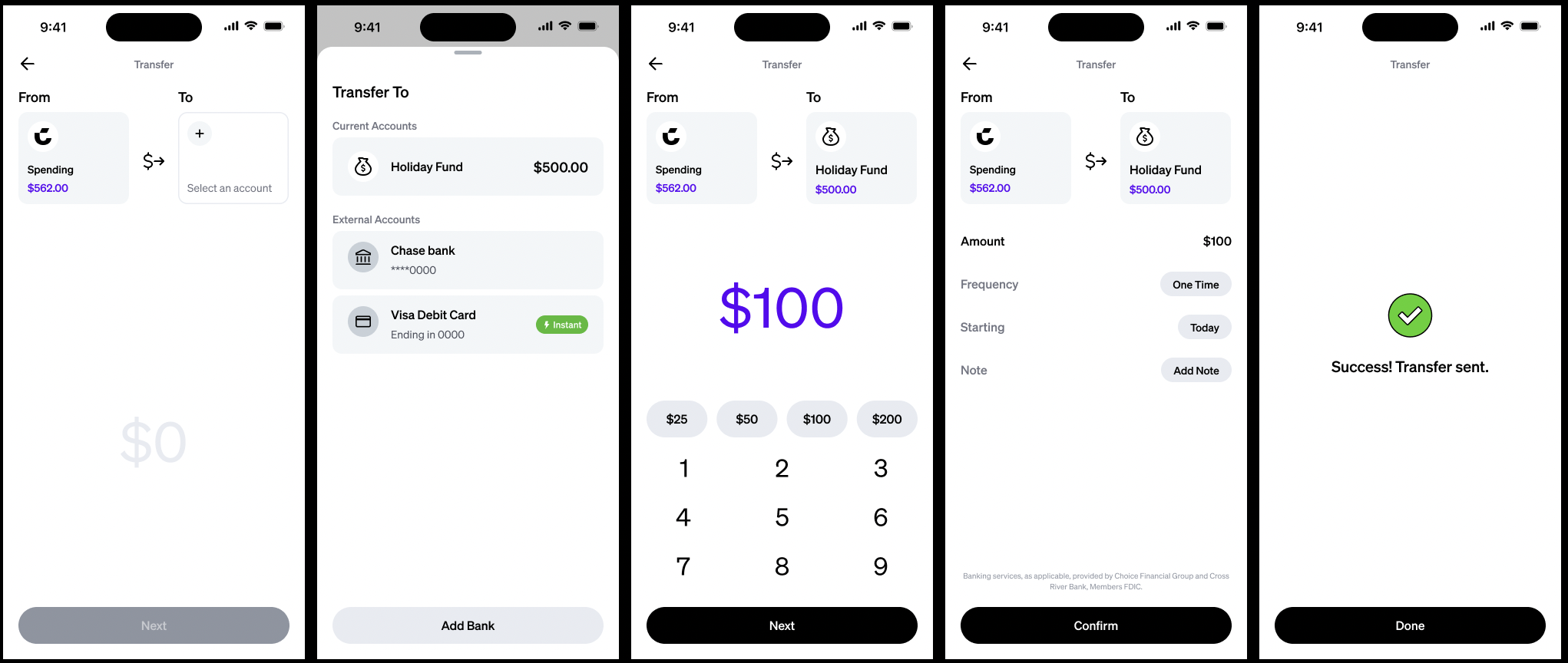 Access to all forms of money movement, including transfers, deposits, withdrawals, and peer to peer payments.